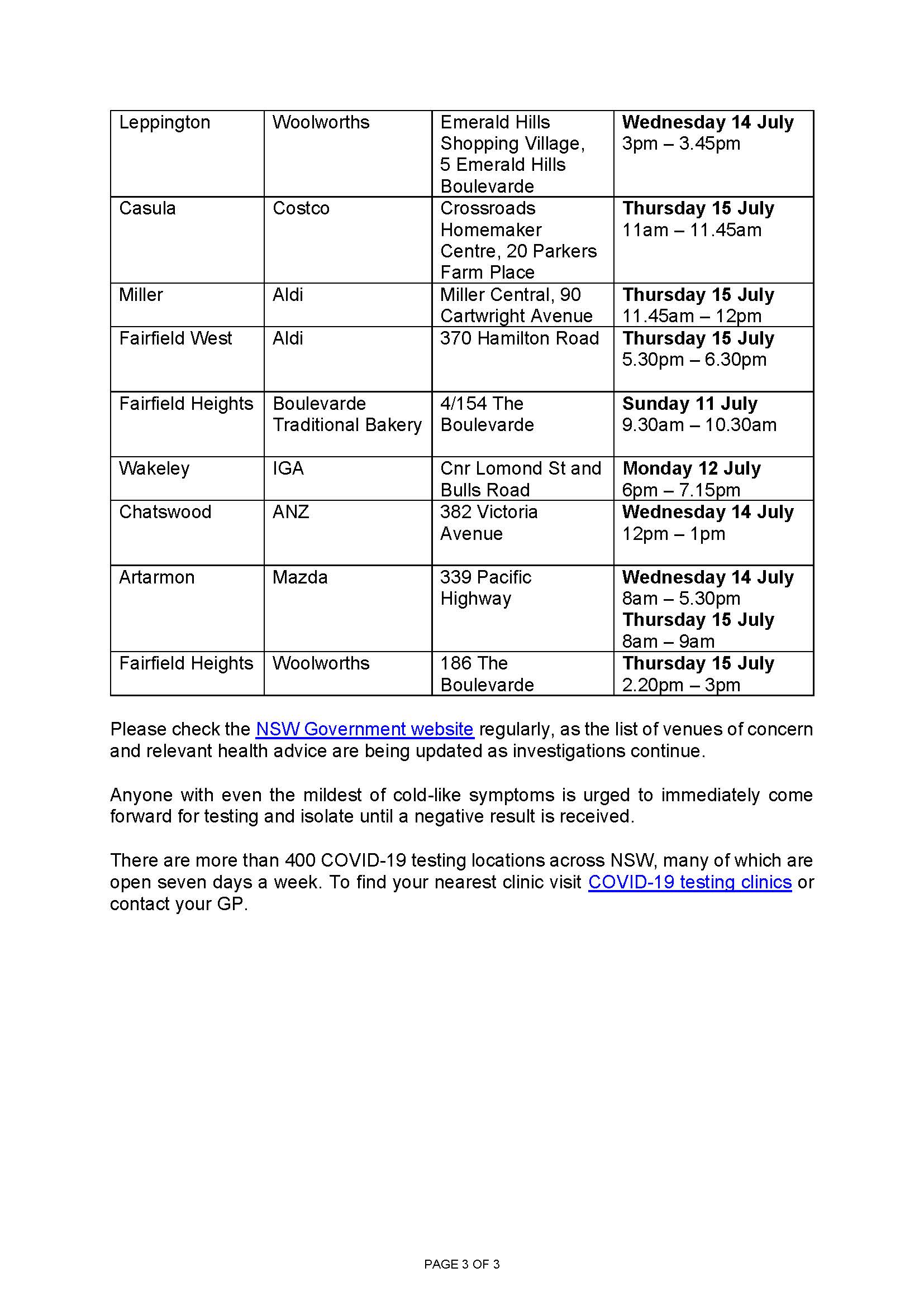 Recent COVID case alert in the Marsden Park area. Stay safe people!