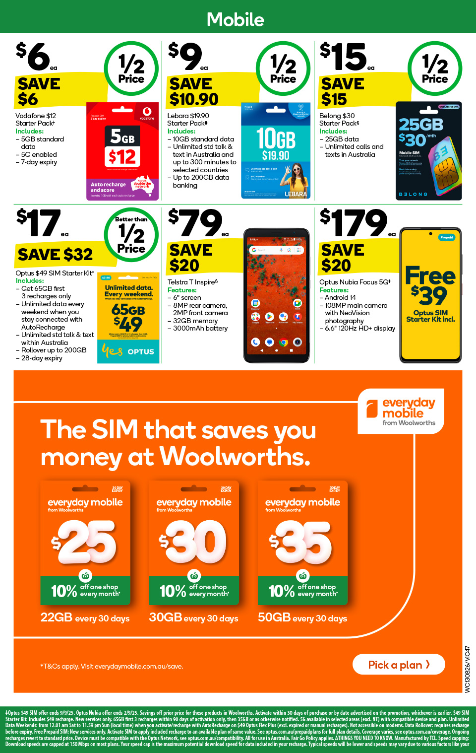 amaysim Prepaid Mobile Starter Packs: $30 for $10, $40 for $15, SIM Only $1, $25 for $10, $35 for $12, $50 for $18 $30 for $10, $40 for $15, $50 for $18, $99 for $49, $150 for $109 $240 for $179